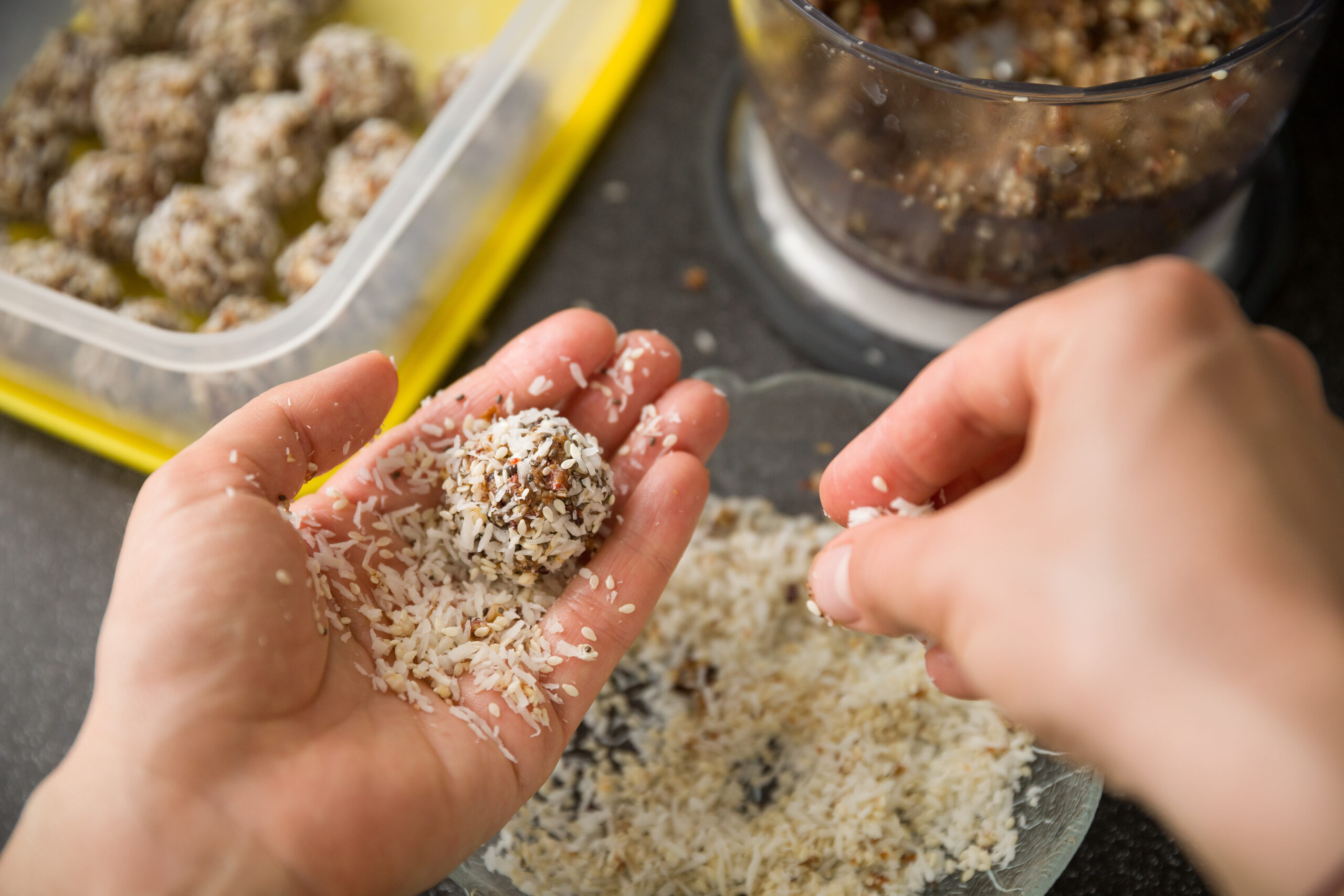 Protein balls are small, easy to eat, and easy to keep grabbing.